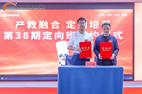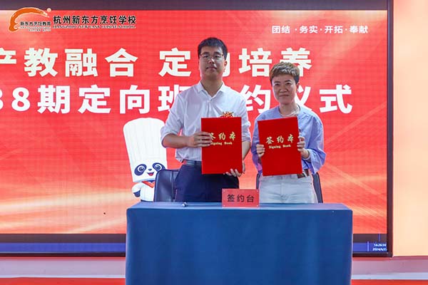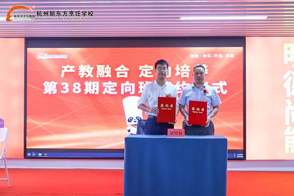 近日,杭州新東方職業(yè)學(xué)校和浙江隆聚餐飲集團(tuán)、浙江東大方餐飲管理有限公司、浙江林家一品牌管理有限公司、杭州稻樂(lè)香餐飲管理有限公司四大企業(yè)攜手,共同舉辦了“產(chǎn)教融合,定向培養(yǎng),共育英才”第38期定向班開班典禮。