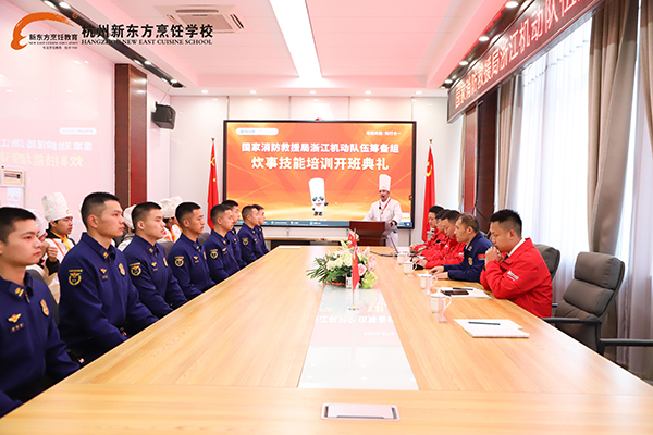 典禮伊始,杭州新東方烹飪學(xué)校校區(qū)負(fù)責(zé)人陳小進(jìn)主任首先致辭。他強(qiáng)調(diào),此次培訓(xùn)聚焦實(shí)戰(zhàn)需求,結(jié)合消防救援隊(duì)伍任務(wù)特點(diǎn),精心設(shè)計(jì)了涵蓋熱菜烹飪、面點(diǎn)制作、刀工技法、勺工技法等核心課程,旨在通過(guò)“理論+實(shí)操”雙軌教學(xué),幫助學(xué)員系統(tǒng)掌握營(yíng)養(yǎng)搭配、菜品創(chuàng)新及應(yīng)急供餐能力。陳小進(jìn)表示,學(xué)校將全力調(diào)配專業(yè)師資,確保培訓(xùn)成效。