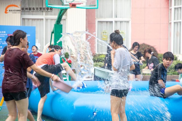 七月的杭州,熱浪如潮,蟬鳴聒噪。當整座城市被暑氣籠罩,杭州新東方烹飪學校的校園里,一場 “歡樂潑水節(jié)” 卻逆勢而行,為師生辟出一片清涼綠洲,讓整個校園變成了歡樂的海洋。