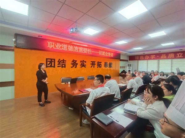 為進(jìn)一步加強(qiáng)杭州新東方職業(yè)學(xué)校師德師風(fēng)建設(shè),弘揚(yáng)師德,樹立師風(fēng),培養(yǎng)教師有理想信念、有道德情操、有扎實(shí)學(xué)識、有仁愛之心,引導(dǎo)我校教師踐實(shí)社會主義核心價值觀。近日,我校邀請嘉興隆聚人事經(jīng)理王莉娟給一線教師進(jìn)行“職業(yè)道德的重要性”主題培訓(xùn)。