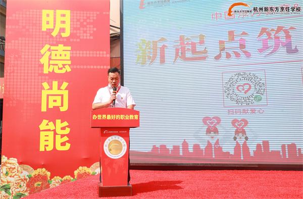 儀式伊始,杭州新東方職業(yè)學(xué)校校長(zhǎng)助理付順洪上臺(tái)致詞。他說(shuō):“今天,我們?cè)谶@里舉行“新起點(diǎn)筑夢(mèng)公益”助學(xué)行動(dòng),傳遞的是杭州新東方職業(yè)學(xué)校的關(guān)懷和溫暖,凝結(jié)著騰訊公益的關(guān)愛(ài)和期待,承載著學(xué)子們的未來(lái)和希望。”