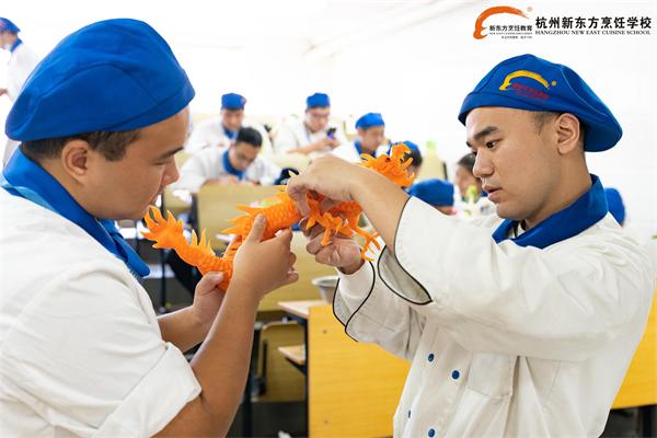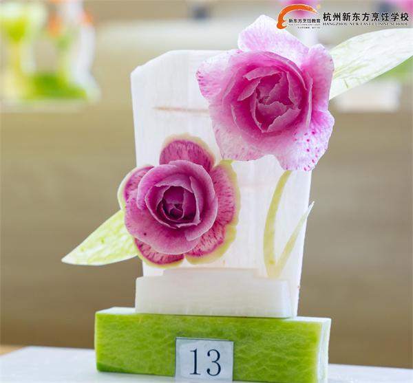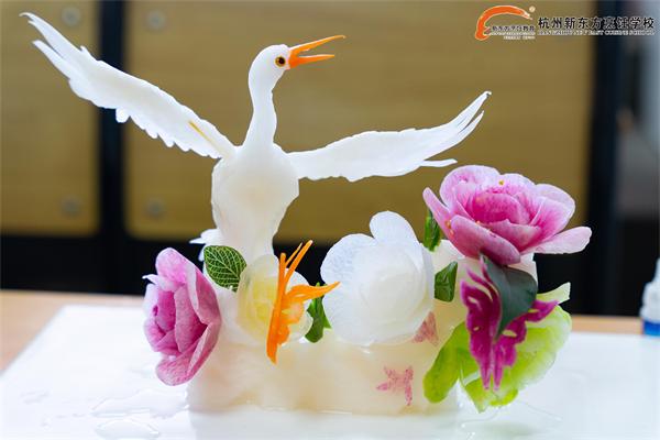 為了促進(jìn)學(xué)生的學(xué)習(xí),提高學(xué)習(xí)積極性,檢驗(yàn)階段性學(xué)習(xí)成果,使他們對自己現(xiàn)階段掌握的技能水平有一個(gè)明確的認(rèn)識。近日,杭州新東方職業(yè)學(xué)校廚師長研修班的同學(xué)們迎來了雕刻階段考核。現(xiàn)在就讓我們一起欣賞他們果蔬雕刻的作品吧。