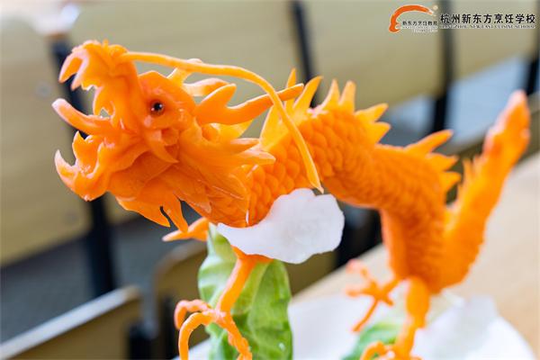 如果給你一根蘿卜,你會用它來做什么呢?做一盤清炒蘿卜絲?或是用來榨一杯蘿卜汁?在杭州新東方職業(yè)學(xué)校,蘿卜不僅僅是一種常見的蔬菜,它還會七十二變!這不,經(jīng)過同學(xué)們的巧手雕琢,它就變身成了一朵綻放的繁花、一只展翅的小鳥、一條騰云駕霧的游龍……正所謂果蔬不語,也可造型百變,姹紫嫣紅、鳥語花香,奇峰林立。