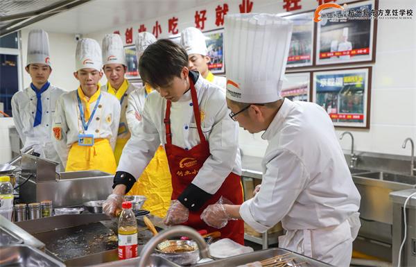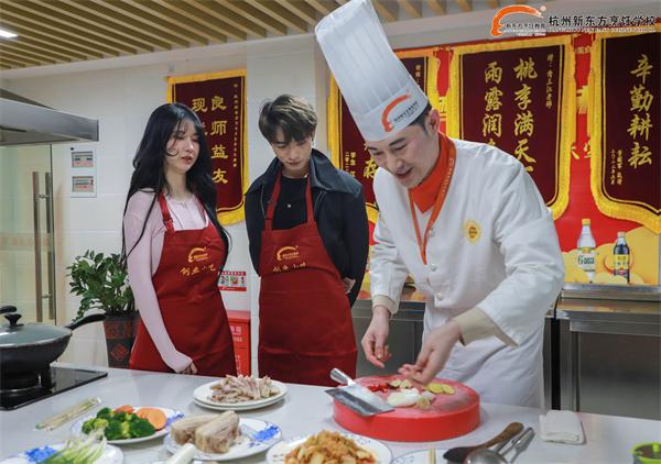 來到夫妻比拼環(huán)節(jié),抱抱念醬和子圣體驗制作了酸辣爽口的辣白菜燜肉。我校老師的現場演示讓大家見識到了專業(yè)廚師爐火純青的刀工。將食材一番燜煮后,散發(fā)出的誘人香氣讓子圣無法抵擋,品嘗后表示是讓他一口就驚艷的味道。老師解釋到這和杭州新東方精選高端食材有關,我們采用的是東北黑豬肉和韓國辣白菜,菜品口感更有保障。