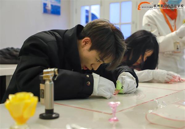 兩位主播來到杭州新東方,怎么能不嘗試我們好看又好玩的手拉糖杯呢?在老師的帶領下抱抱念醬、子圣來到糖藝教室,帶上專用防燙傷手套一起熬煮糖漿,熬制成功后就開始創(chuàng)意手作環(huán)節(jié)啦!為了讓成品造型精美,他倆小心翼翼地拉制著糖衣,經過一番努力后,樣式精美的夫妻糖杯展現在大家眼前。初次嘗試,就有如此精彩的表現,他們獲得了糖藝老師的夸贊,成就感十足。