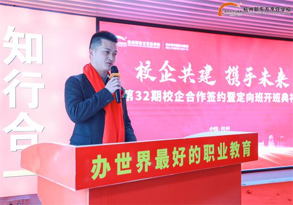 校企聯(lián)袂,同舟共濟(jì)話雙贏;定向培養(yǎng),齊心協(xié)力謀發(fā)展。2023年2月6日上午,杭州新東方職業(yè)學(xué)校第32期校企合作簽約暨定向班開(kāi)班典禮隆重舉行。