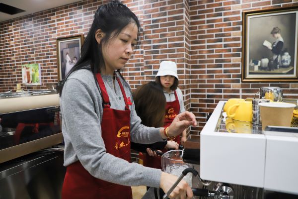 時(shí)光是迷人的醇香,甜蜜的節(jié)日從親手制作一杯咖啡開(kāi)始。老師們從基礎(chǔ)的理論知識(shí)學(xué)習(xí)到親手實(shí)操,磨豆、組合器具、轉(zhuǎn)移豆粉、溫杯、悶蒸、沖泡、裝杯。不管時(shí)間匆匆流逝,只靜靜等待著醇厚的咖啡液緩緩流出,再搭配著奇思妙想,用別致的拉花繪制出自己的浪漫情懷。