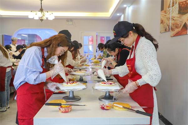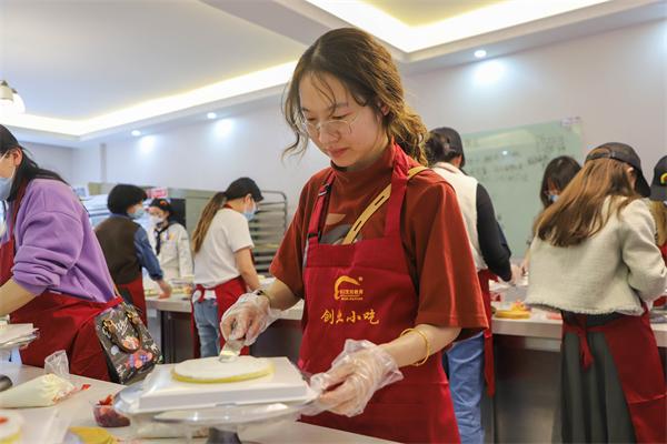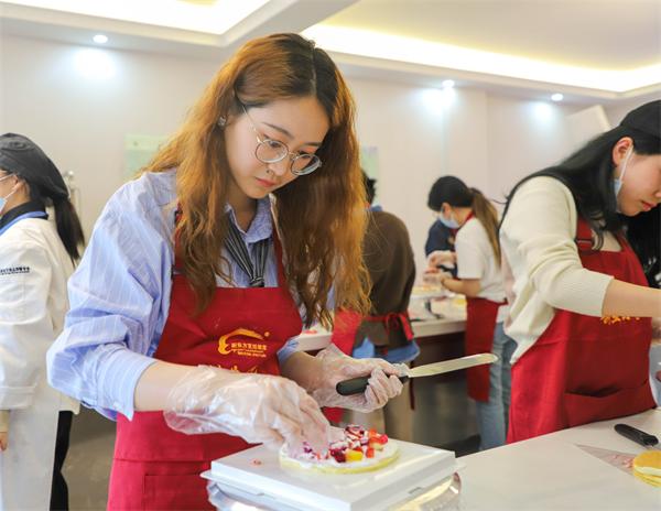 有趣的西點烘焙之旅在大家的談笑風(fēng)生中開始啦!我校西點老師為大家詳細(xì)講解工具的使用、烘焙食材的搭配比例、演示水果蛋糕、泡芙、肉松貝貝的制作過程。香甜的奶油、打發(fā)的面團(tuán)、鮮嫩的水果,一切都讓人怦然心動。