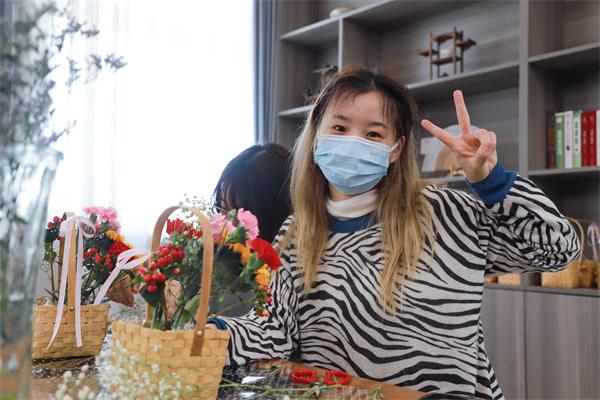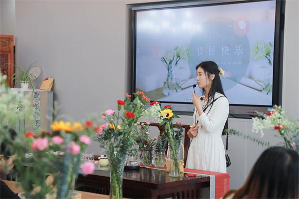 課程中,花藝?yán)蠋熛虼蠹医榻B了不同花材所蘊含的深刻寓意,為大家教授插花技巧,從花材、容器、色彩搭配等方面詳細(xì)地介紹了插花的藝術(shù)造型要素和技巧手法,并在現(xiàn)場做了生動演示。