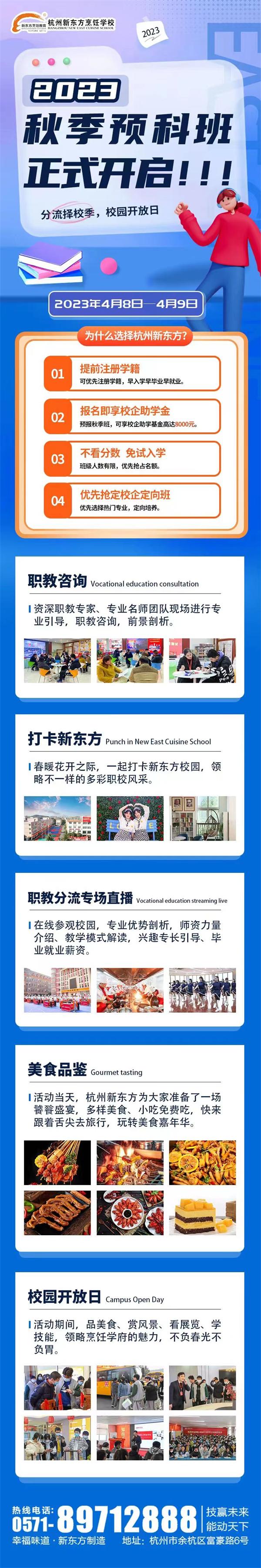 值此秋季預科班正式開啟的關鍵時刻,杭州新東方特舉辦校園開放日活動,這個周末來杭州新東方職業(yè)學校參觀咨詢,打卡校園,隨堂試學,多樣美食,免費品嘗。現場更有資深職教老師為大家答疑解惑。無法到場的同學們也可以線上觀看職教分流專場直播,云游校園。