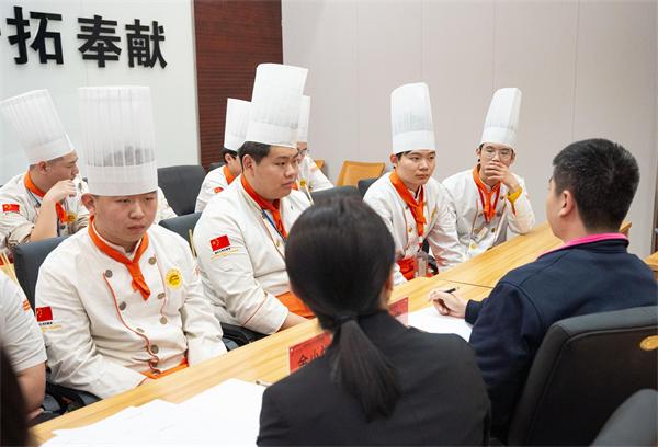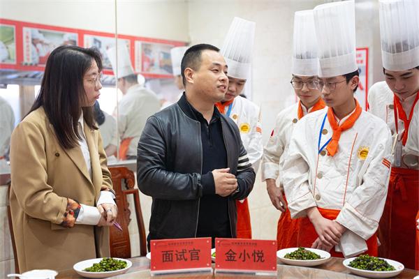 應(yīng)聘學(xué)子們紛紛拿出看家本領(lǐng),揮刀舞勺、各顯神通,在擺盤設(shè)計(jì)、菜肴口感、營養(yǎng)搭配等方面充分發(fā)揮出了自己的競爭優(yōu)勢。金小悅行政總廚朱燕平針對火候把握、烹飪方式、擅長菜品等方面對學(xué)子進(jìn)行創(chuàng)意提問,專業(yè)細(xì)致、涉及面廣,以便在全面掌握學(xué)子的廚藝水平后,篩選出技能過硬,綜合條件突出的應(yīng)聘者。