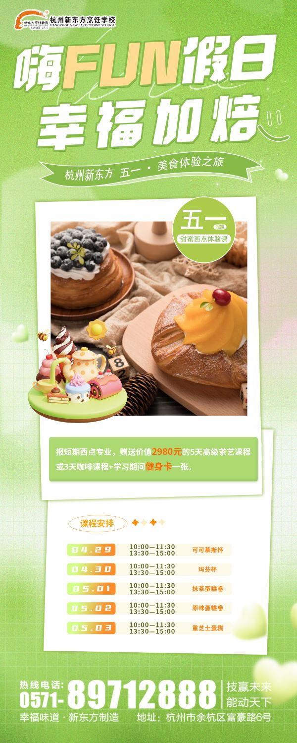 杭州新東方職業(yè)學(xué)校為各位有志于烘焙的人提供了一個(gè)優(yōu)質(zhì)的學(xué)習(xí)和實(shí)踐平臺(tái)。