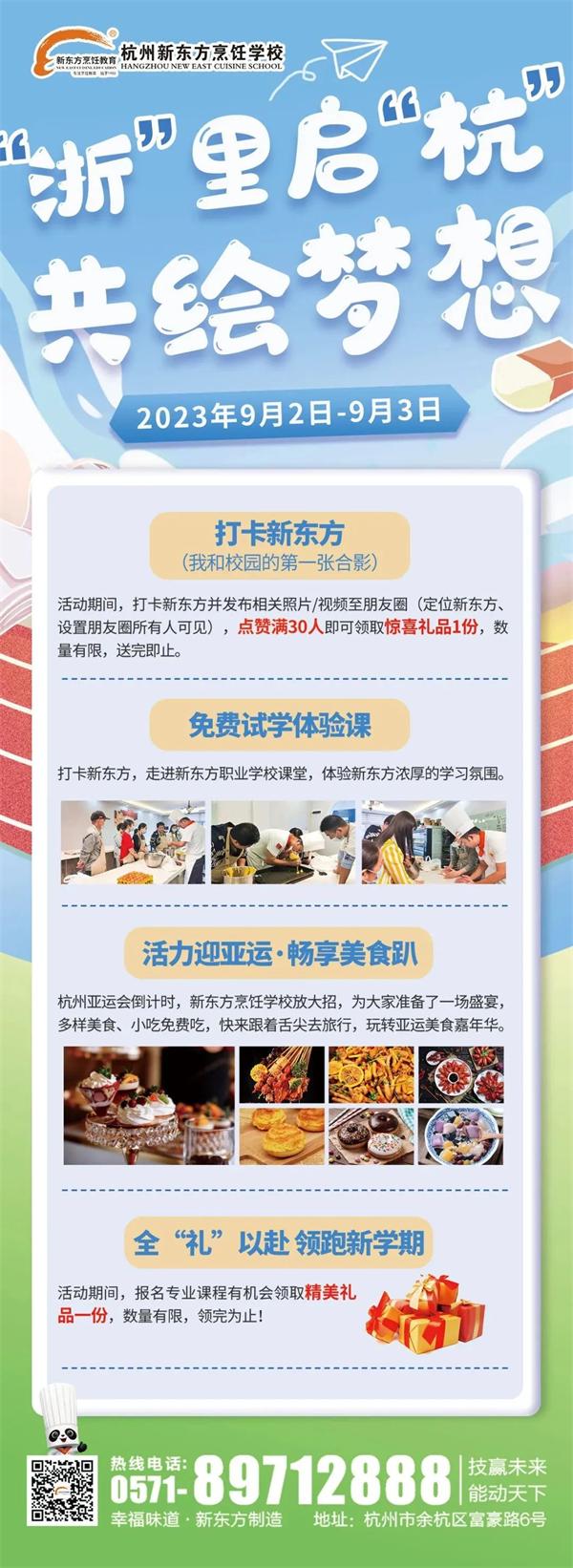 杭州新東方職業(yè)學校一直致力于提供優(yōu)質的教學服務,給學子搭建成長的階梯。9月2日~9月3日,來”浙“里,啟”杭“新程,共繪夢想。