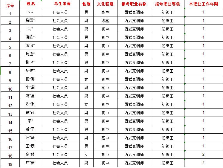 附件1:計(jì)劃編號(hào)2023-S-009778西式烹調(diào)師初級(jí)工(五級(jí))考生名冊(cè)
