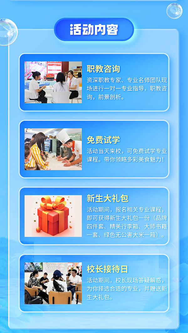 活動期間,報名相關(guān)專業(yè),還可領(lǐng)取新生開學(xué)大禮包,在這個七月啟程多彩校園生活吧。