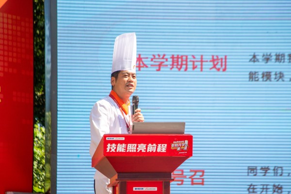 活動最后,校長上臺致辭。他首先向滿懷夢想、朝氣蓬勃的新同學們表示最熱烈的歡迎,歡迎大家加入杭州新東方這個傳承技藝、創(chuàng)造美味的大家庭,同時也向如期返校的同學們致以誠摯問候。