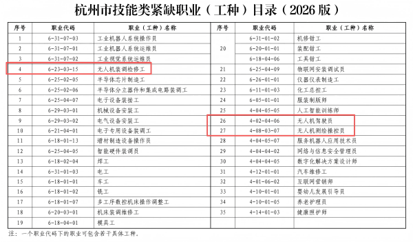 政策官宣!杭州2026年緊缺工種發(fā)布,無人機專業(yè)成技能成才黃金賽