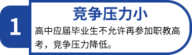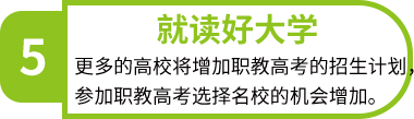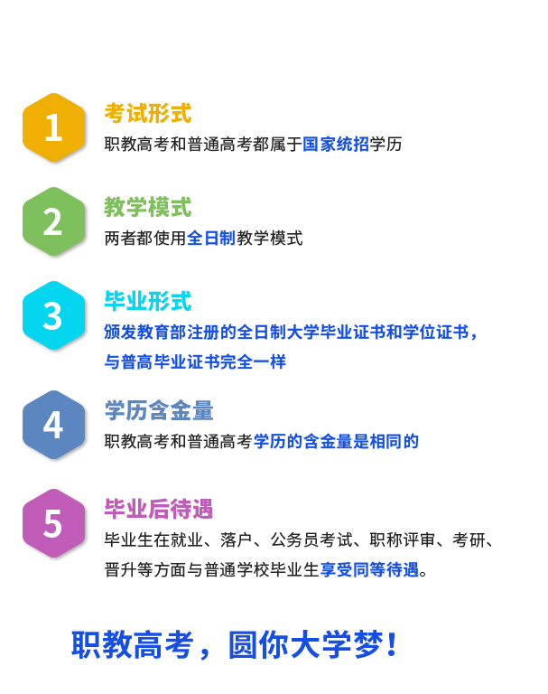 職教高考也叫職業(yè)教育高考,是相對于普通高考(普通高等學(xué)校招生全國統(tǒng)一考試)具有同等功能的高考制度,教育部已經(jīng)建立了完善的職教高考制度,使之成為應(yīng)用型大學(xué)考試招生的主渠道,通過 “文化素質(zhì)+職業(yè)技能〞的考試招生辦法,為學(xué)生依照興趣和稟賦多樣化選擇、多路徑成才搭建成長渠道。畢業(yè)后,學(xué)生可以報考大學(xué)本科或?qū)?圃盒#⒃谕ㄟ^考試后繼續(xù)深造。畢業(yè)證書可在國家教育部學(xué)信網(wǎng)查詢,并且符合學(xué)位授予條件的學(xué)生還可以獲得學(xué)位證書,從而有資格參加公務(wù)員、事業(yè)編等考試。